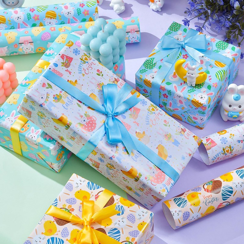 - 【Easter Gift Wrap】Our Easter gift wrapping paper are made of premium 80g coated art paper, thick and robust, smooth and glossy, clear printed and bright colored, nondeforming and fadeless, not easy to break.