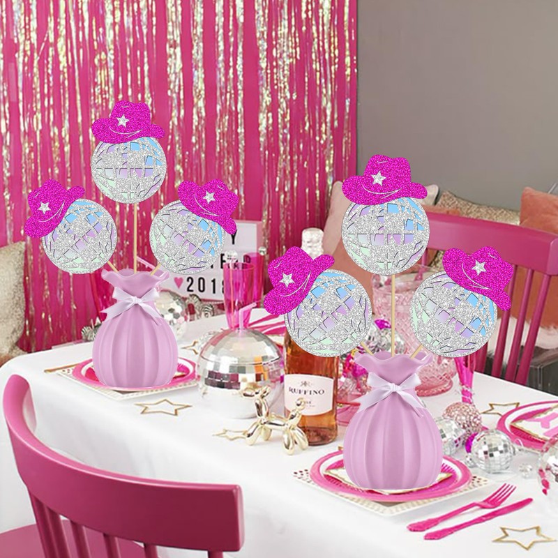- PARTY PACK: Set includes 8 glittery disco ball centerpiece sticks with pink cowgirl hats, perfect for western-themed celebrations,cowgirl birthday party