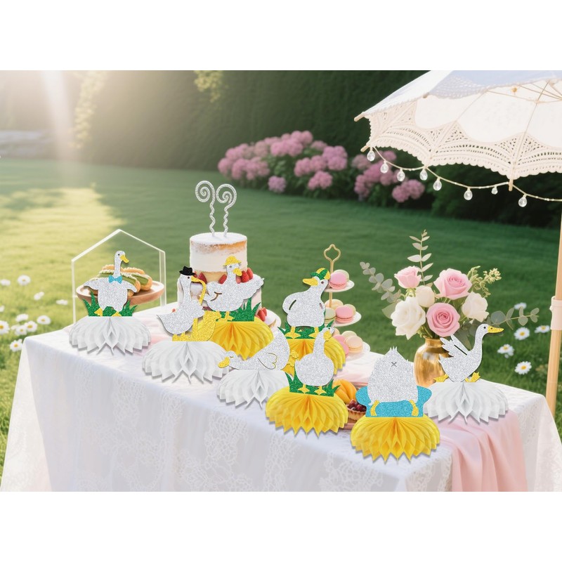 - PREMIUM MATERIAL: Goose Birthday Honeycomb Centerpiece are double-sided cardboard paper, durable and reusable. It can be folded according to the crease after use and can serve you for a long time.