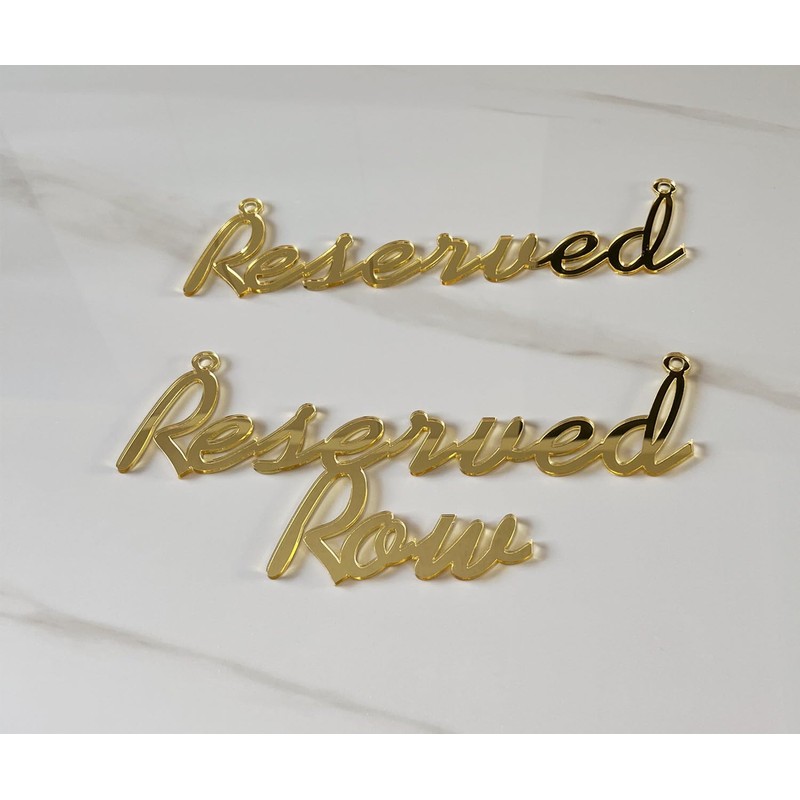 8pcs Hanging Mirrored Reserved Row Signs,Reserved Seating Signs with Rope for WeddingImportant Events Church Pews Chair and Restaurant (Reserved Row, Gold Mirror)