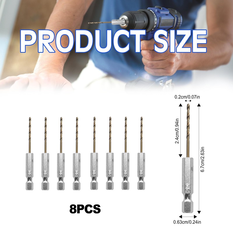8PCS Hex Drill Bit Set Pilot Drill Bits 2mm Hex Drill Bits High-Speed Steel, Twist Drill Bit for Wood Metal Plastic, for Versatile Drilling in Various Applications (2mm)