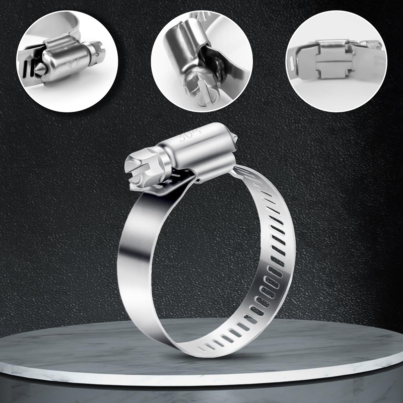 - 【Stainless Steel 304】Hose clips are made of rust-proof and corrosion-resistant 304 stainless steel, ensuring their durability and long lifespan. The smooth edge design prevents damage to the hose, and the sturdy structure makes them resistant to breakage, offering lasting convenience and safety.
