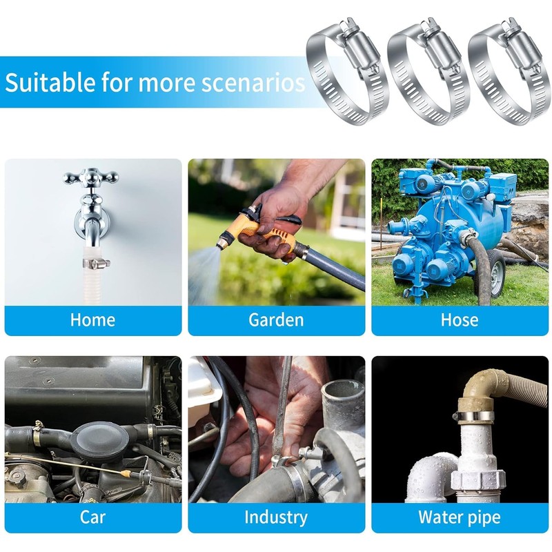 - ✅ Simply open the screw of the hose clip using a screwdriver, thread the pipe through the clamp, tighten it until the clamp grips firmly; the clamp's diameter will apply the sealing pressure for a perfect fit