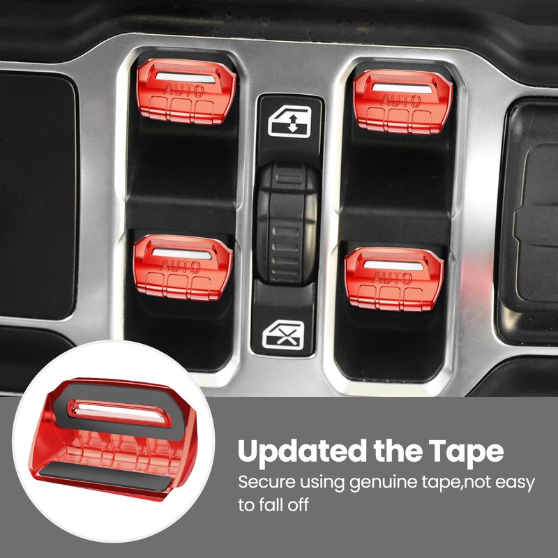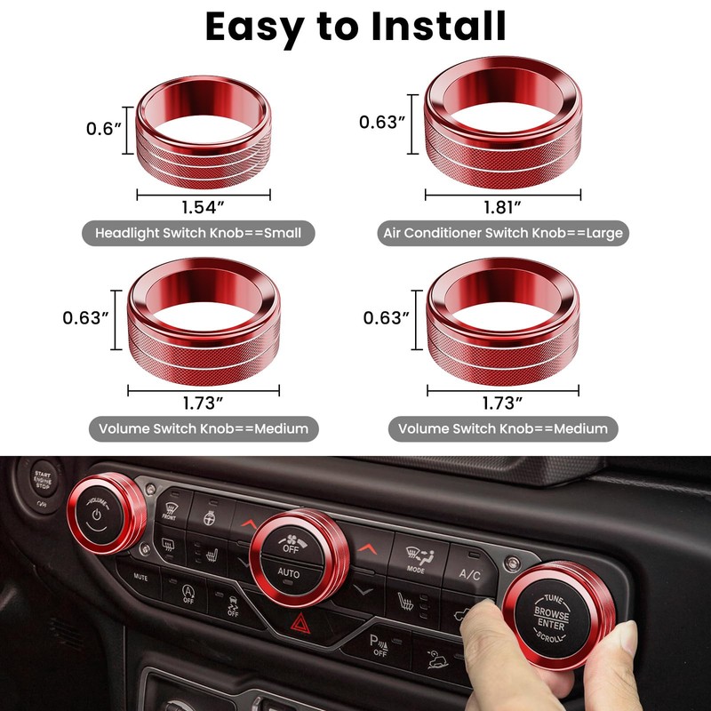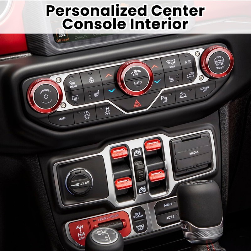 DIAMOOKY 8PCS Metal Button Knob Cover for Jeep Wrangler JL JLU 2018-2025 & Gladiator JT Accessories Window Switch Button Cover Volume Radio Air Conditioner Headlight Switch Knob Cover (Red)