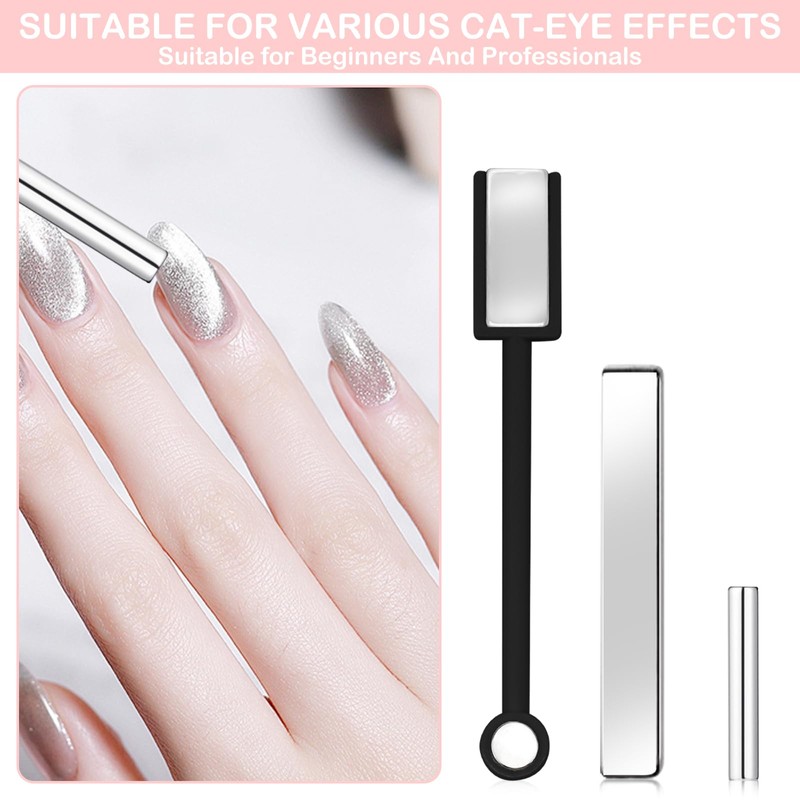 - 【Easy To Use】 Our cat eye gel nail polish magnet tool needs to be used with cat eye gel nail polish. First, apply cat eye magnetic nail polish, then put the nail art magnet close to the nail for 10-15 seconds to achieve the cat eye effect (Note: the nail polish magnet needs to face the nail, but please do not touch the nail), and finally put it under the UV lamp for 60 seconds.