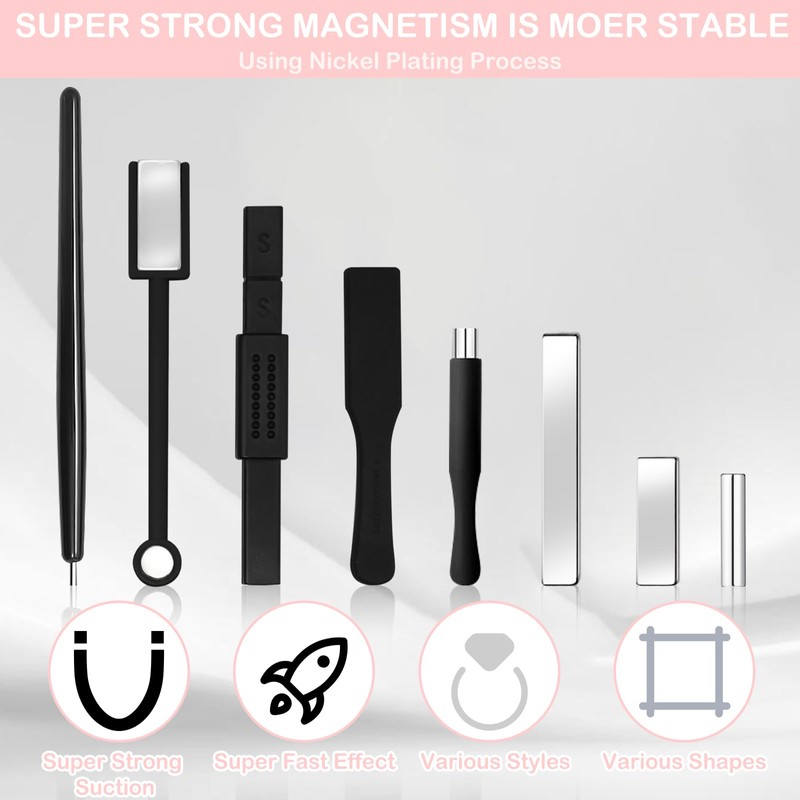 - 【Various Cat Eye Effects】 This cat eye magnet for nails contains magnetic nail polish wands of different shapes and sizes. You can use cat eye magnet tools of different shapes to create various cat-eye effects. Please use your imagination for DIY design to create your personalized manicure.