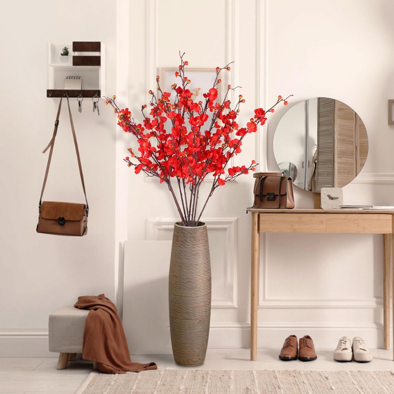 8Pcs Red Cherry Blossom Branches Artificial Flowers for Summer Autumn Indoor Decoration,Faux Flowers 36.6" Long Stems Plum Fake Peach Plants for Wedding Home Office Bedroom Party Decor (red)