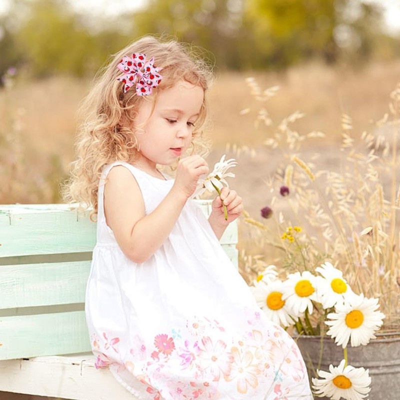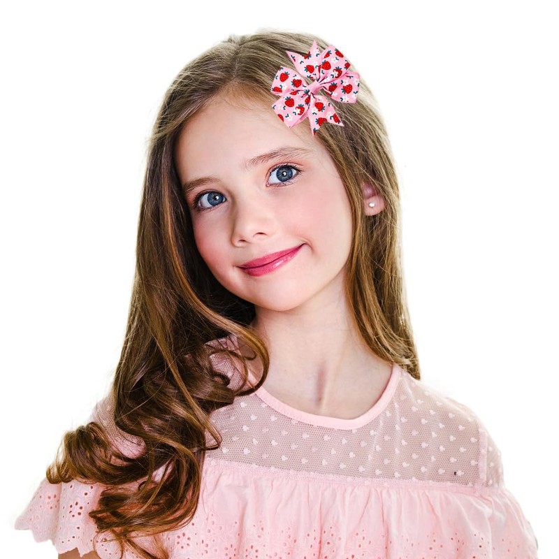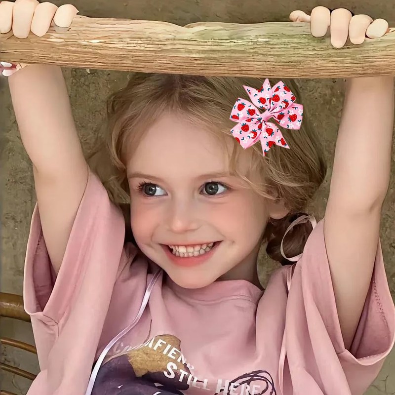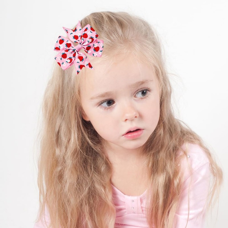 8pcs Strawberry Hair Bows for Girls Hair Clips Grosgrain Ribbon Pinwheel Bows with Alligator Clips Barrettes