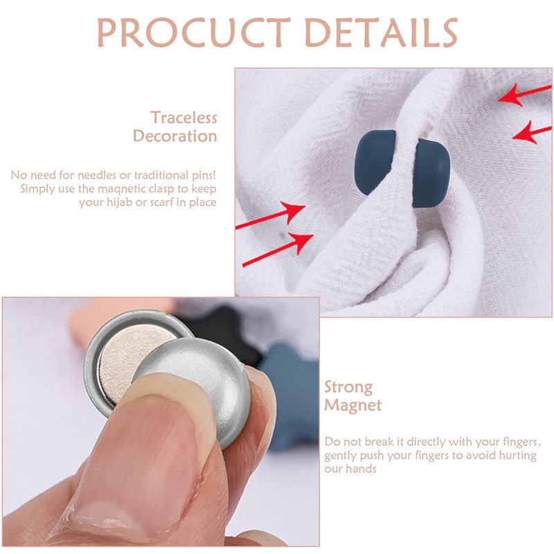 - Strong magnetic hold for secure fastening without slipping or falling off, ensuring your hijab stays in place all day.