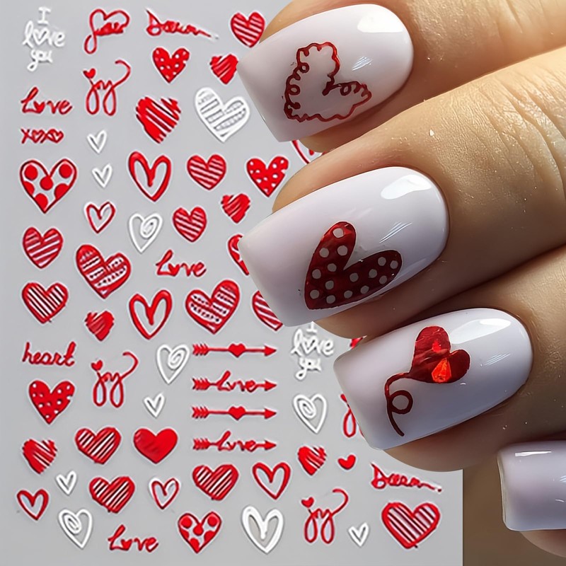 - Easy to Use: This red white heart nail stickers for nail art is self-adhesive. just use tweezers to tear off the cute nail stickers, and then stick the 3d nail stickers on the nail.You can also use nail gel to cover to make the beautiful stickers last longer