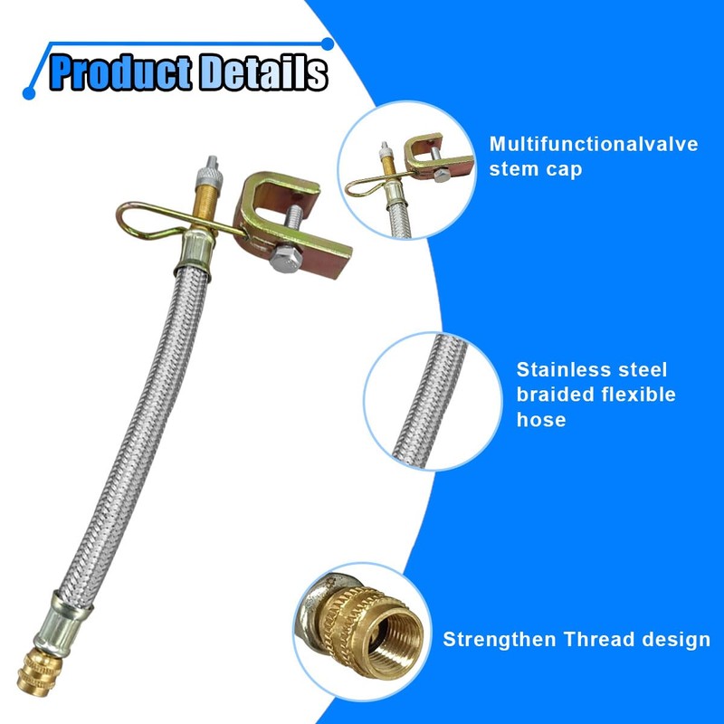 This Valve Stem Extension is made of high-quality stainless steel and copper, sturdy, rust-proof, long service life, is easy and quick to use, and can quickly inflate tires and check tire pressure.