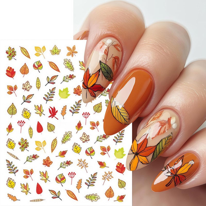Quantity:8 Sheets 3D Self-Adhesive Fall Leaf Nail Art Stickers Decals