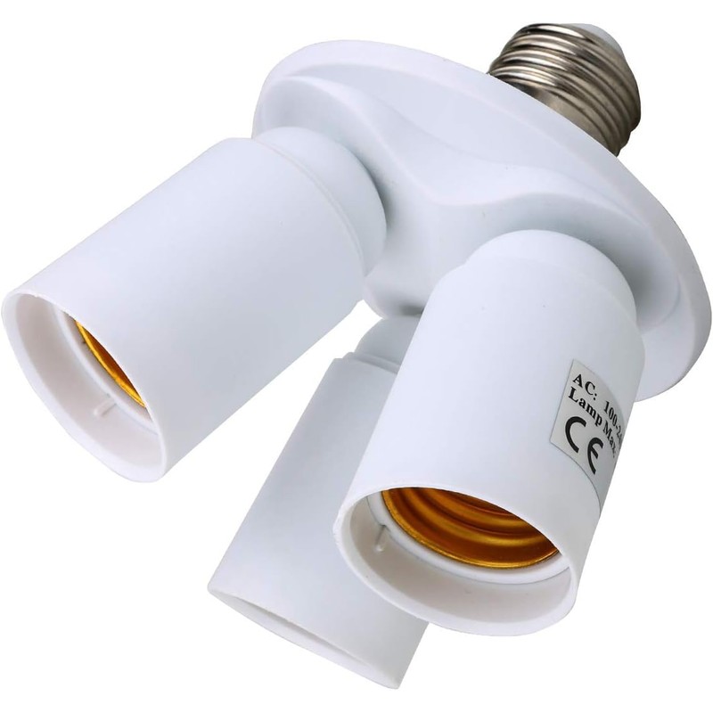 - [ SPECIFICATIONS ] Voltage: 100V-240V, Frequency: 50-60HZ, Wattage: Max 60W per socket, CE RoHS Certification, 3 in 1 Compact Lamp Socket Adapter adds your bulbs 3 times light.you can use any type of bulbs you want.The sockets are fixed and the angle can not be adjusted