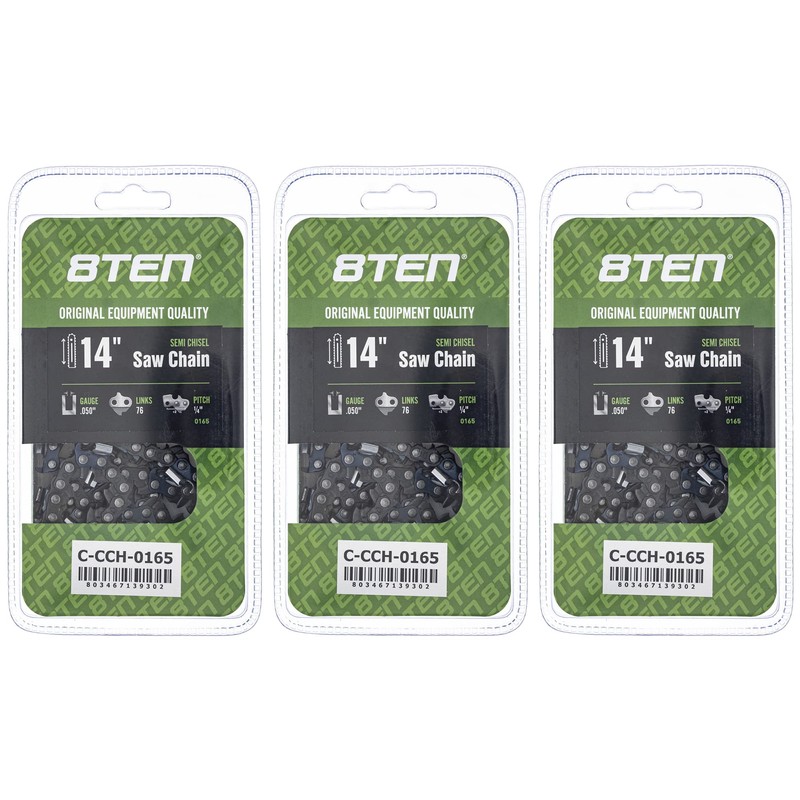 8TEN Semi Chisel Chainsaw Chain 14 Inch .050 1/4 76DL 3 Pack
