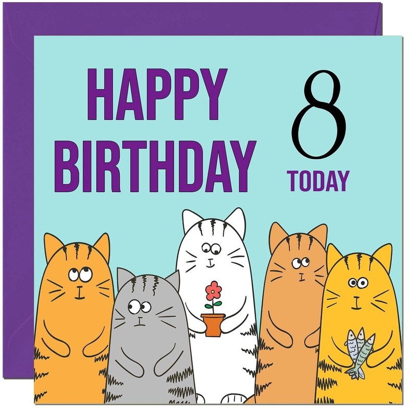 8th Happy Birthday Card - Cute Cats Birthday Card for 8 Year old Kids eight, eighth