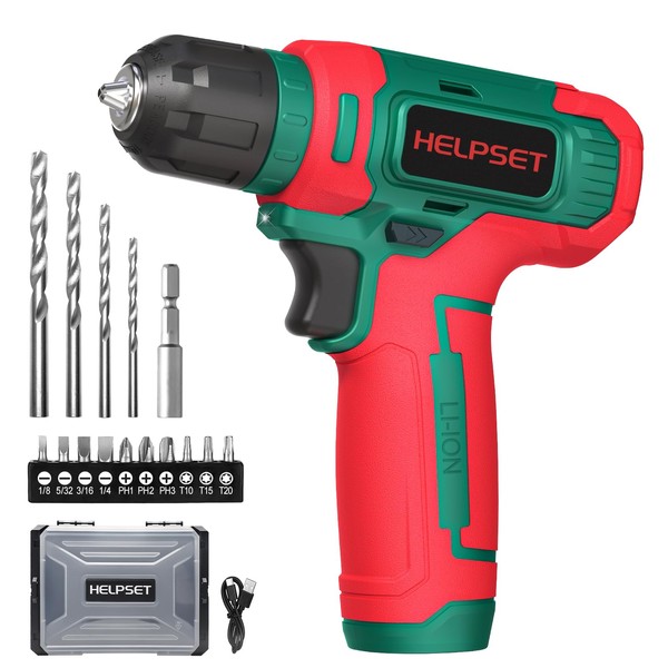 8V Cordless Drill Driver Set - 3/8" Keyless Chuck, 15pcs Drill Bits Included, Built-in LED Light for Drilling & Screwing, Comes with Toolbox for Storage (Christmas)