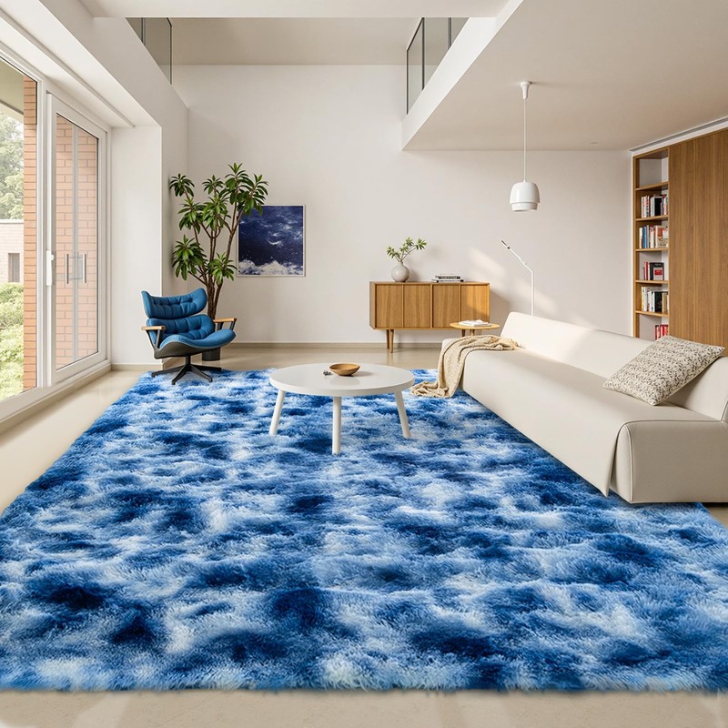 8x10 ft Fuzzy Rug for Living Room Soft Fluffy Blue White Bedroom Area Rugs Non-Slip Shaggy Carpet for Nursery Kids PlayRoom Dorm Office Indoor 1.7'' Thick Modern Plush Carpets