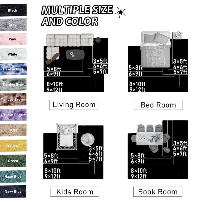 - 【Multiple Colors & Sizes】The soft shaggy rug offers various colors from dark to tint,making it a great home room decor. Sizes from 3x5 rug to 9x12 rug suit for various indoor scenes like rugs for living room,bedroom,nursery,kids room,playroom ect