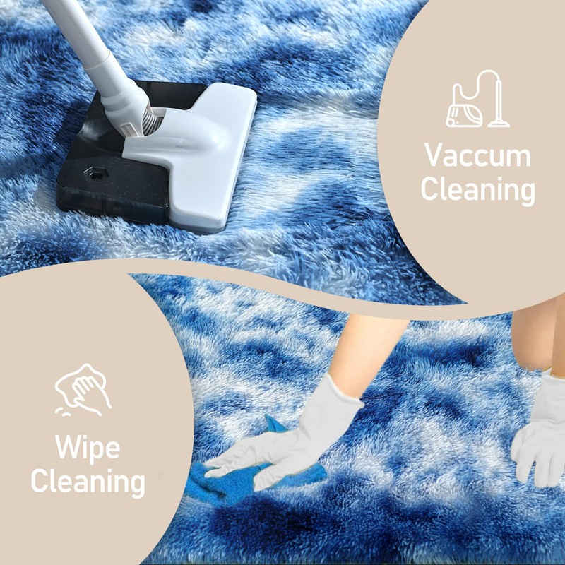 3. Since the carpet is packed in vacuum compression, it is recommended that you take it out and lay it flat for 1-2 days,then you can shake the rug several times by holding 1 or 2 corner to make it fluffy like pics, You can use a vacuum cleaner to clean the surface impurities. For deeper stains, you can wipe it with a damp cloth or wash it by hand, so that the plush carpet has a longer service life. After cleaning, it is suggested to lay the rug flat to air dry and pat it loose.