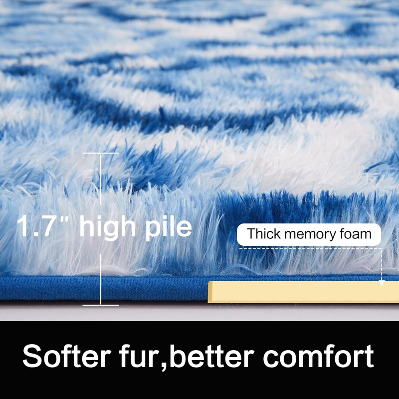 - 【More Fluffy Rug】This area rug for living room is made of ultra-soft microfibers,with a 25% increase in plush content. The 1.7-inch high plush rug gives you a super soft and comfortable feeling as soon as you step on it. Enjoy cozy time with your family