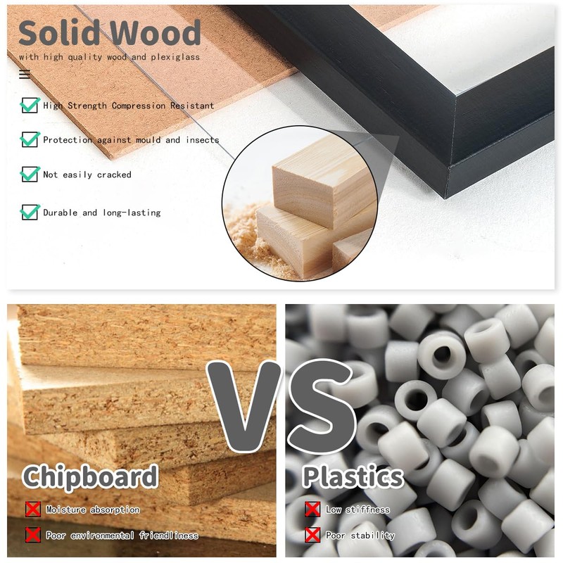 - đăPremium Quality Materială:The picture frames are well crafted of high-quality solid wood with a clear plexiglass cover. Plexiglass is lighter and stronger than real glass, and shatter-resistant. when they fall to the ground you won't worry about hurting the kids.