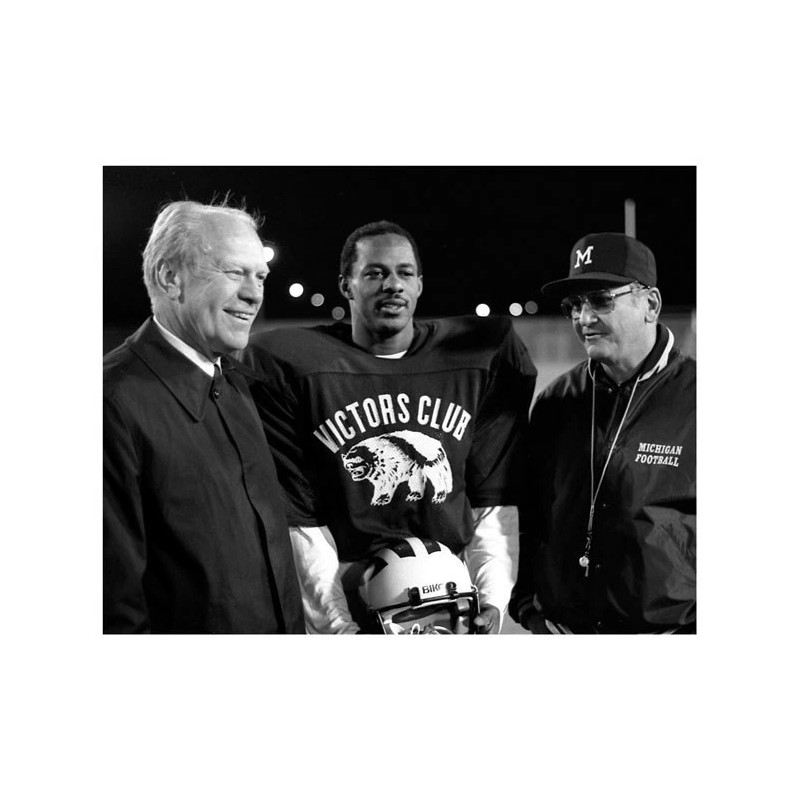 8x10 Silver Halide Photo Gerald Ford With Bo Schembechler University of Michigan