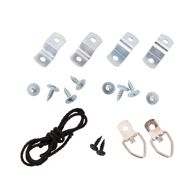 - HARDWARE: includes 1/2" one-hole offset clips, 1/2" deep screws, 2 D-ring hangers and wire. Use standard screwdriver to attach your artwork to floater frame