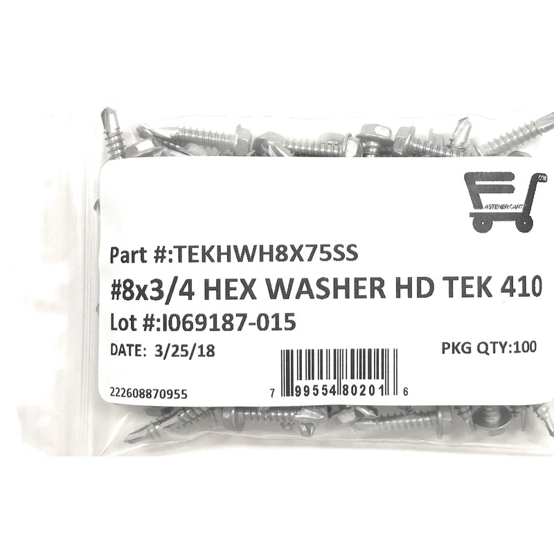 #8x3/4 Stainless Steel Hex Washer Head Self Drilling Tapping TEK Screw (410 Stainless Steel) 100 Pieces 8X3/4"