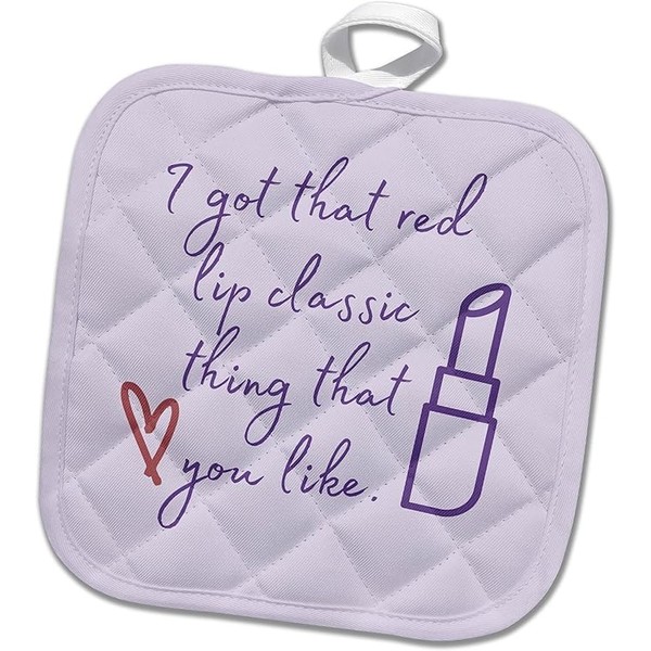 I Got That Red Lip Classic Thing That You Like Favorite Song Lines Prints Potholder is perfect for daily use, while coordinating well with any kitchen décor. This 8 by 8 inch, 50/50 cotton/polyester blend, pot holder features a quilted design which allows for more flexibility when using. Handy attached loop offers the option to hang for display or storage. Heat resistant for safely removing dishes from the oven and hot pots from the stove. Great as a hostess or housewarming gift.