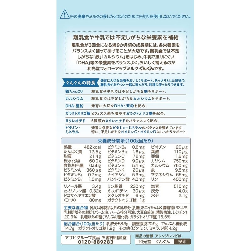 和光堂 フォローアップミルク ぐんぐん 粉ミルク [満9ヶ月頃から3歳頃] ベビーミルク 鉄・カルシウム・DHA配合 白 830g