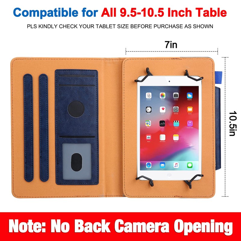 - Note: Please measure your tablet's length range (8.5-10.5 inch) and width (5.7-7 inch) before purchasing. This case does not have a back camera opening.
