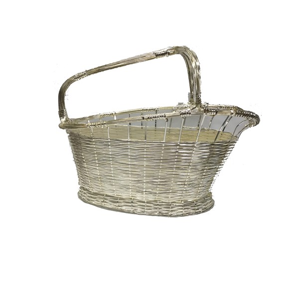 9.75 Inch Silver Plated Wine Bottle Cradle with Basket Weave Design