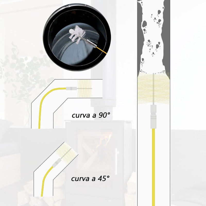 - 🏠MULTIPLE USES: This pellet stove cleaning kit cleans metal stove pipes, flues, chimneys, dryer vents and more without plugging in or screwing, just ready to use. Whether it is a straight part or a complex corrugated structure, it can be flexibly applied. Suitable for domestic use, cleaning contractors or chimney sweeps. No need to plug in or tighten screws, just ready to use