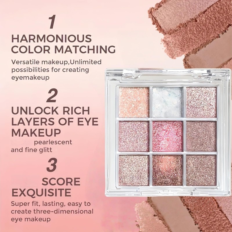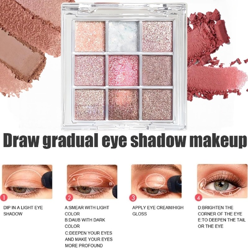 - MULTIPLE OPTIONS:Our 9 colors glit/ter eyeshadow palette come in a variety of charming colors,and you can choose our shimmer makeup palette with nat/ural waterproof according to different occasions.Our natur/al highly shimmer eyeshadow for women not only meets your facial makeup needs beyond eyeshadow,but also pink eye make-up palettes for women helps you create a charming makeup look.Our shimmer waterproof eyeshadow palette help you simplify your makeup work time