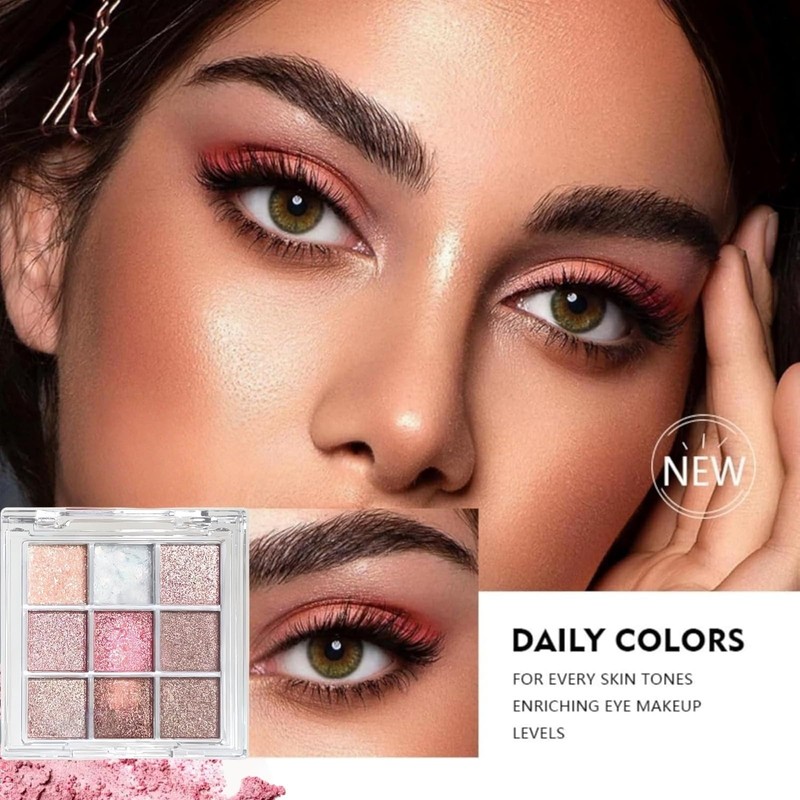 9 Colors Glit/ter Eyeshadow Palette,Shimmer Makeup Palette with Nat/ural Waterproof,Natur/al Highly Shimmer Eyeshadow for Women,Pink Eye Make-Up Palettes Women,Shim/mer Waterproof Eyeshadow Palette
