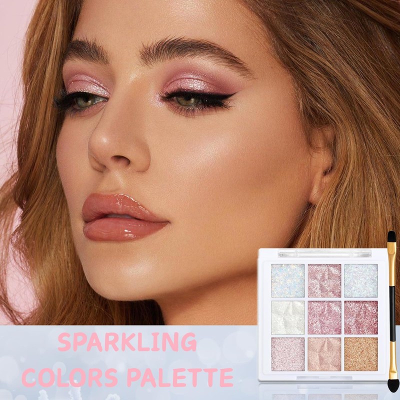 - Diverse Glitter & Shimmer Shades: This 9 Colors eyeshadow palette boasts a variety of glitter eyeshadow and shimmer eyeshadow tones, ideal for women to craft countless stunning looks. Whether it's daily natural makeup or eye-catching party styles, these eyeshadows can add a unique charm to your eyes.