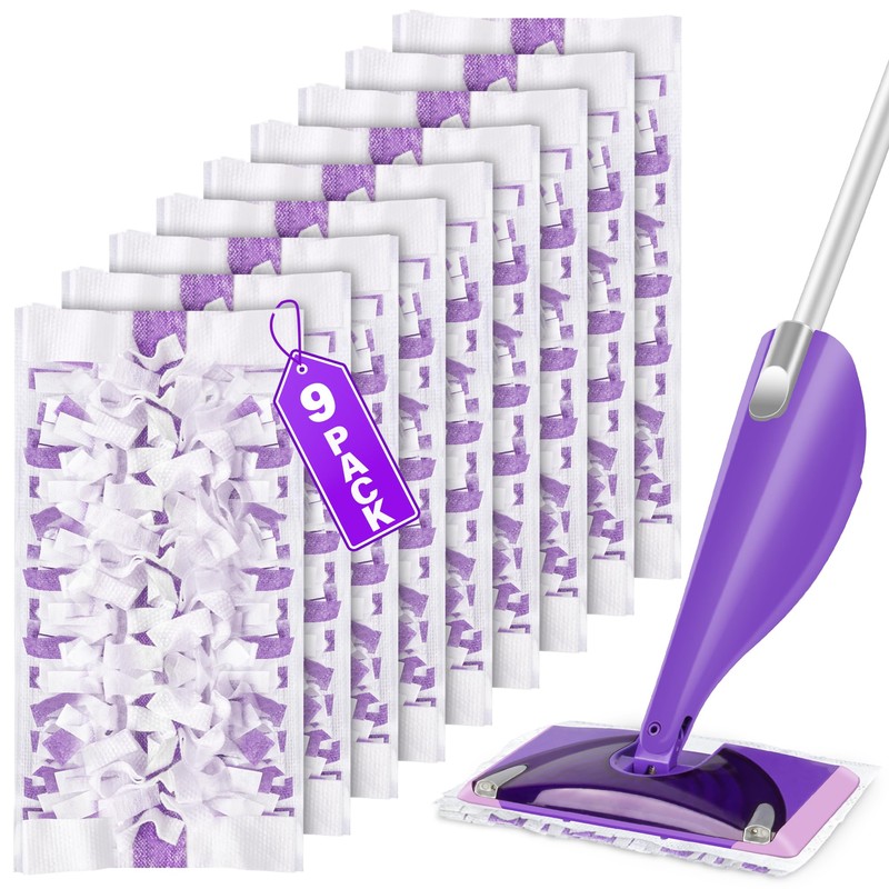 9 Count Disposable Mop Pads Refills for Swiffer WetJet, Multi Surface Hardwood Floor Cleaner Spray Mop Pads Refills Multi Layers Thickened and Super Absorbent