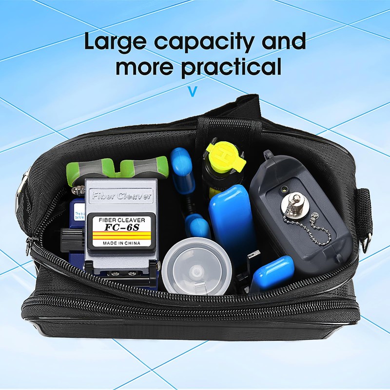 - FTTH Equipent Accessories:Fiber optic tool bag,Optical Fiber Cleaver,Visual fault locator, optical power meter, fiber optic stripping pliers, cleaning bottle, cleaning paper, 2-in-1 fixed length device,Fiber optic stripper