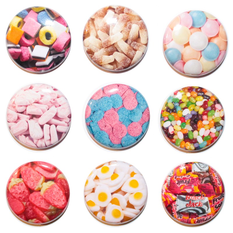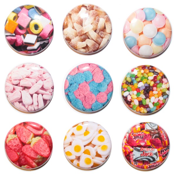9 Mini Retro Sweet Fridge Magnets (25mm) - Made in UK - by Button Zombie