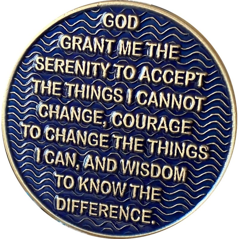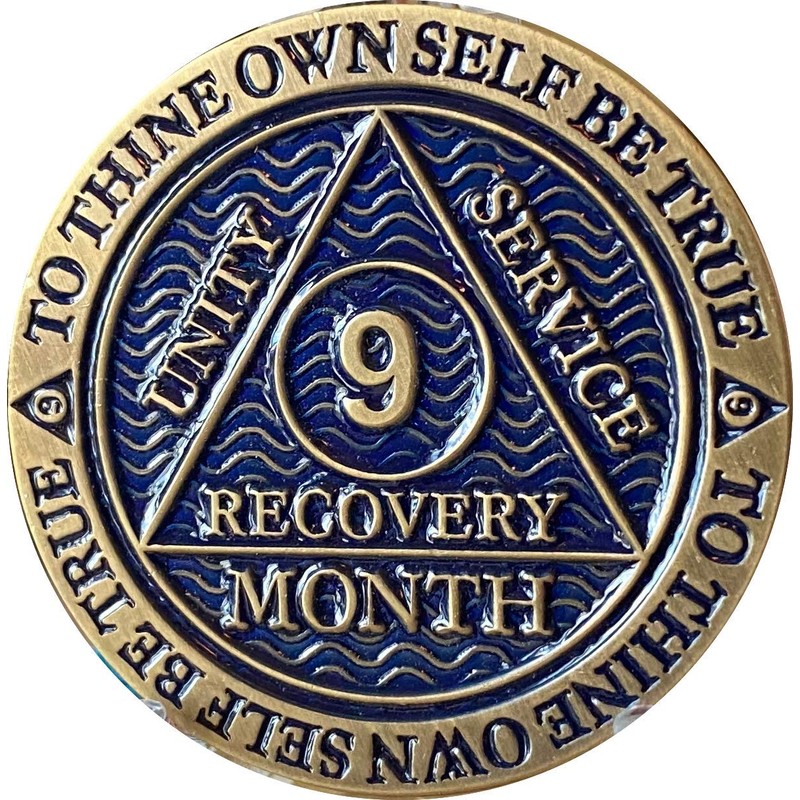 9 Month AA Medallion Antique Bronze Dusty Blue Color Sobriety Chip