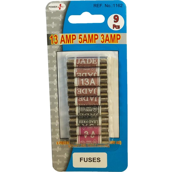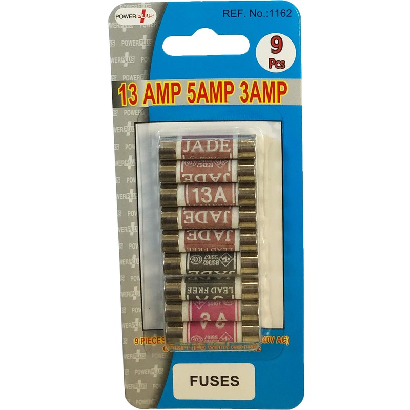 9 Pack Mixed Fuses- 5x13 Amp, 2X 3 Amp, and 2x5 Amp