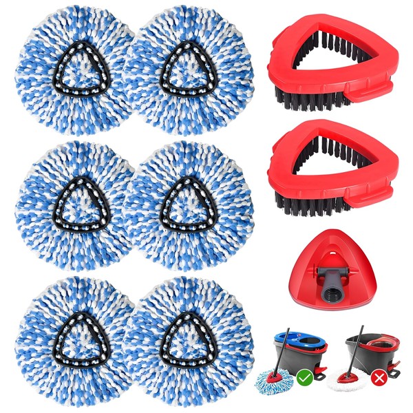 Mop heads replacements for O Cedar, 1 Washable Floor Head + 6 Microfiber Mop Cloths + 2 Mop Brushes