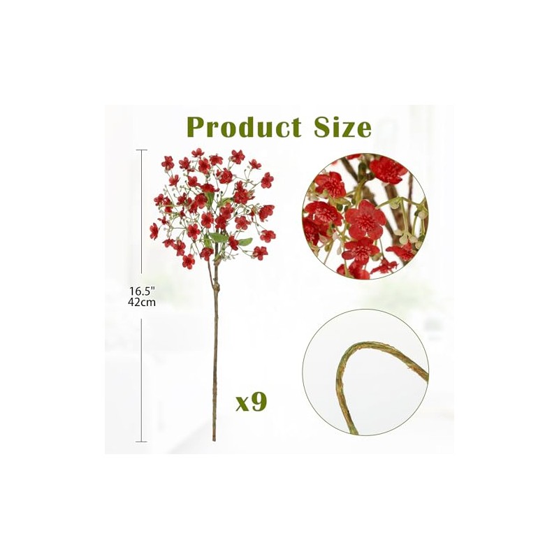 9 Pack Red Baby’s Breath Artificial Flowers 9 Bundles Gypsophila Fake Silk Stems for DIY Floral Arrangements, Wedding Bouquets, Rustic Farmhouse Home Table Decor