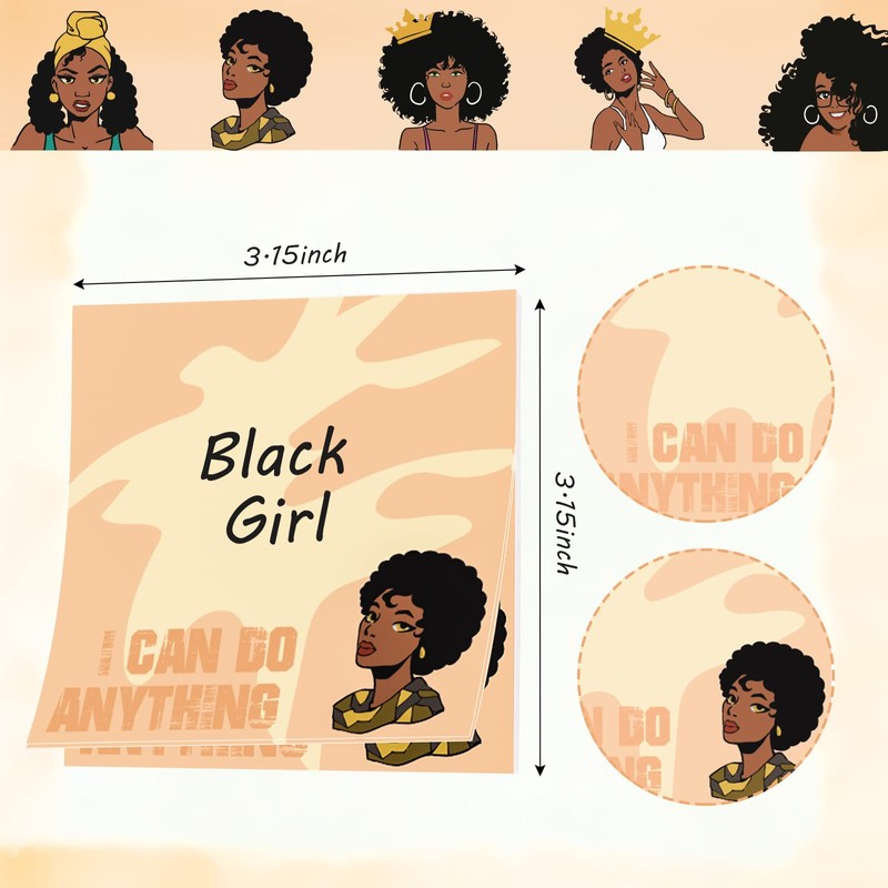 - Inspirational Theme with Black Girl Patterns: these cute sticky notes adopt the inspirational theme, printed with different black girls and positive affirmation quotes, look elegant and appealing, reminding girls to be optimistic and confident in their lives