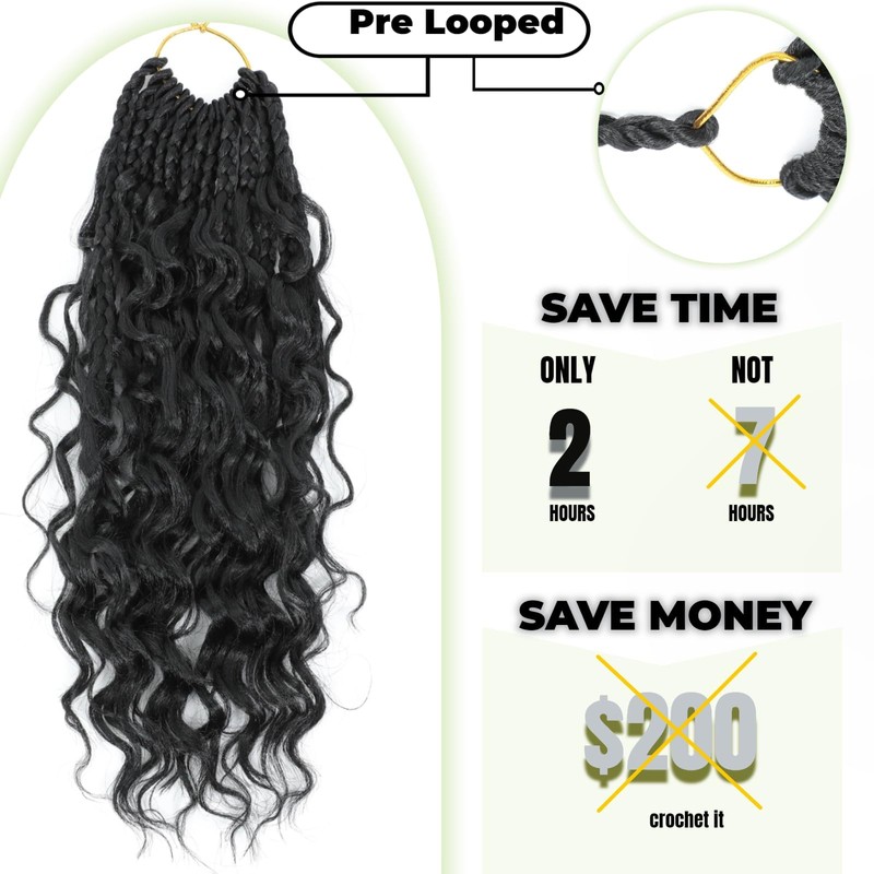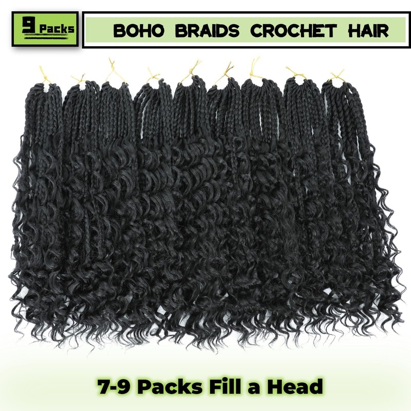 - Boho Box Braids Crochet Hair for Black Women Material: Made of low-heat synthetic fiber pressed for durability, Ultra-flexible & Tangle-Free Design for All-Day Comfort, 100%handcrafted to match black hair texture, Natural-looking