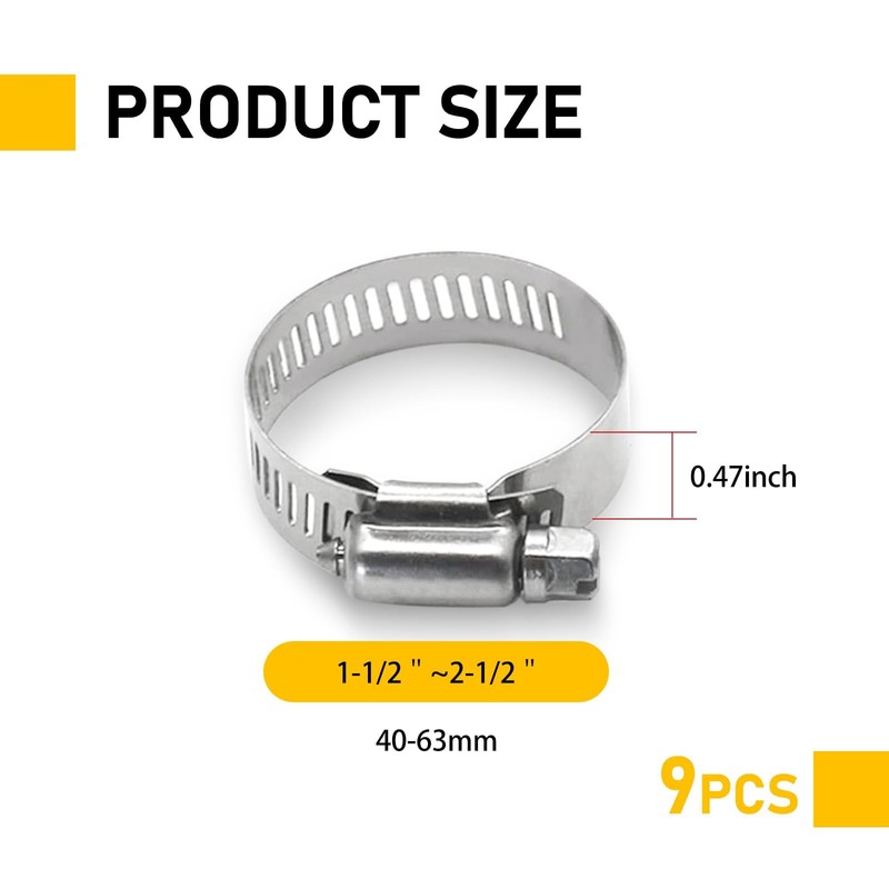Secure pipes, hoses, and tubing with this 9-piece adjustable clamp set, crafted from marine-grade 304 stainless steel. Designed for automotive, marine, and industrial applications, these clamps deliver superior corrosion resistance and effortless installation.