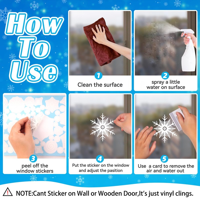 9 Pcs Christmas Window Stickers Xmas Decals Decorations for Glass Snowflakes Window Cling Sticker for Winter Decorations