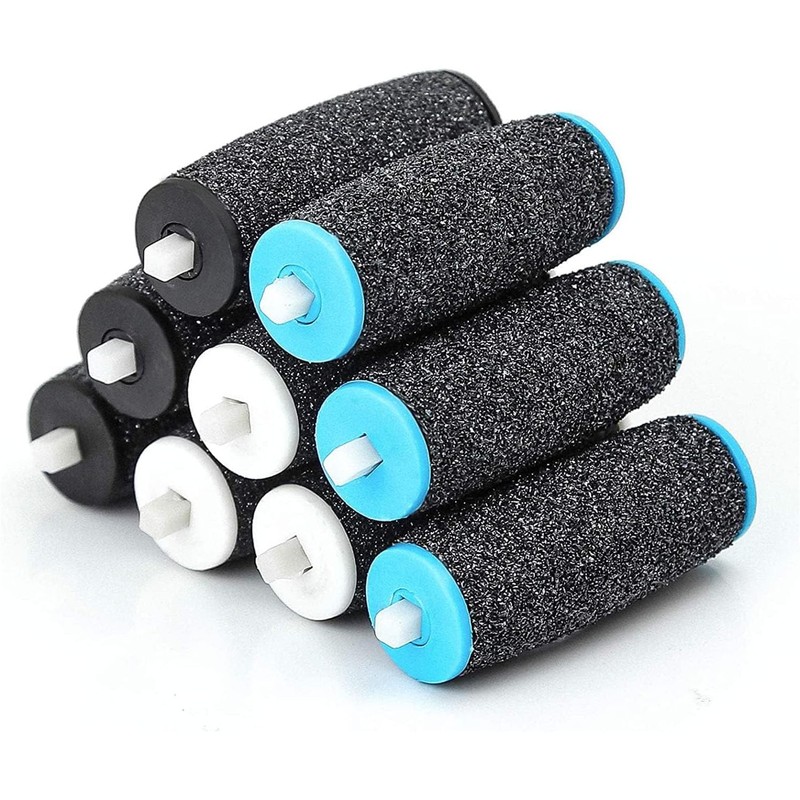 - 9-Piece Multi-Grit Replacement Rollers – Includes 3 coarse levels (extra/regular/gentle) to tackle tough calluses, smooth rough skin, and maintain soft feet. Diamond-coated surfaces deliver salon-quality results at home.