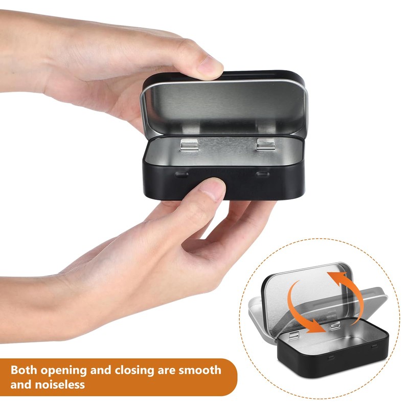 3. The metal storage box measures 9.5x6x2.1 cm/3.7x2.4x0.8 inch(LxWxH), which is lightweight and easy to store and carry