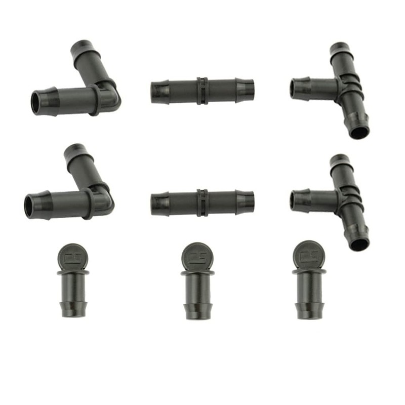 - 1/2 inch T-connector, corner connector, straight connector and end plugs, ideal for connecting CS bead hoses